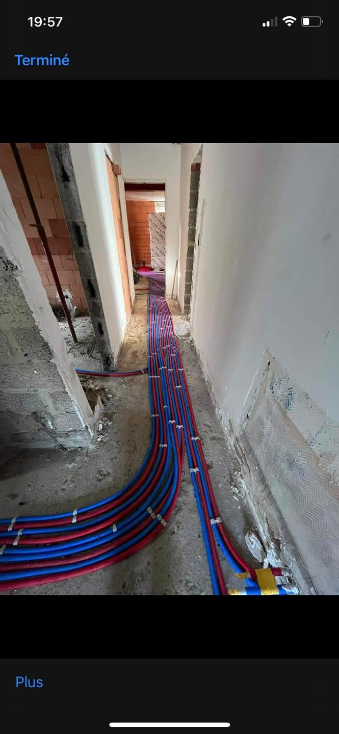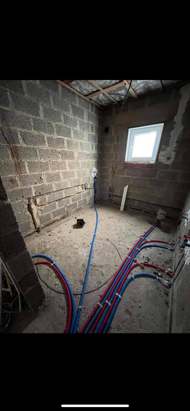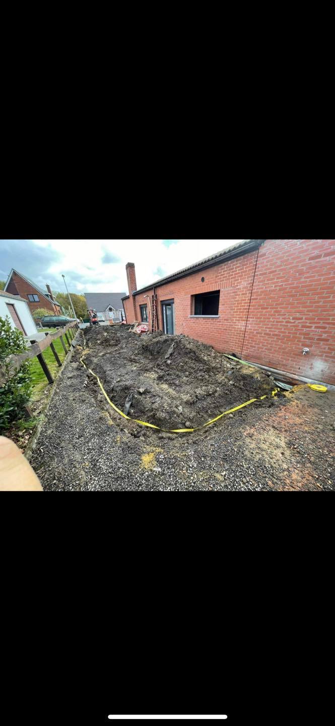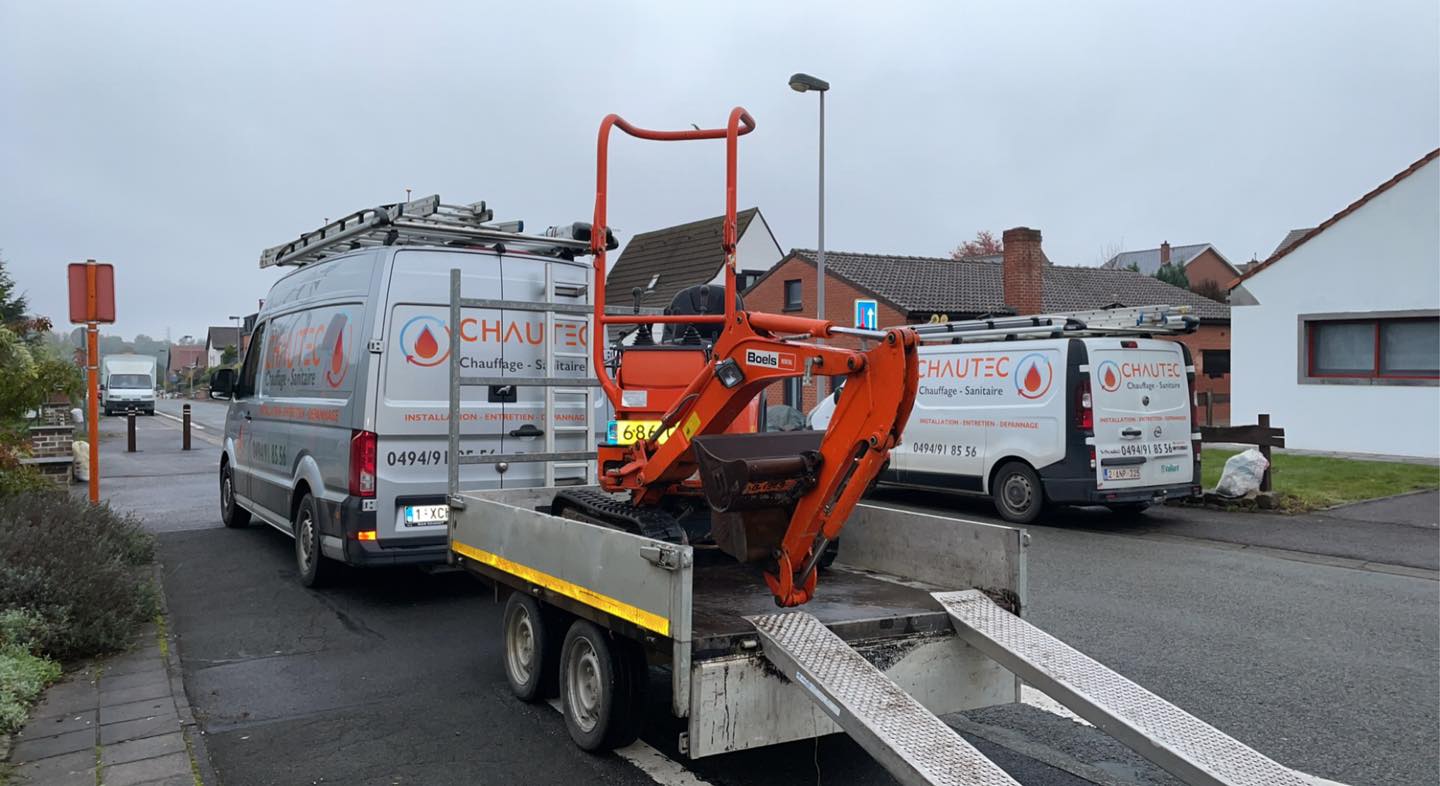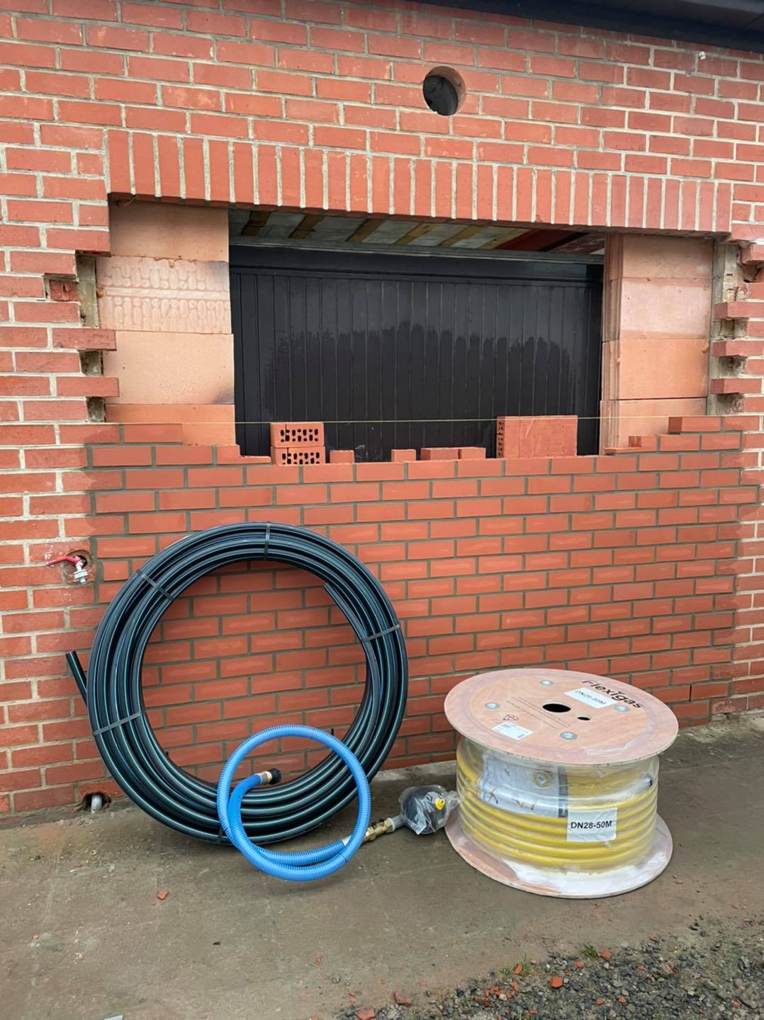 Tranchée pour conduite d’eau de ville , gaz et eau de pluie et nouvelle installation.